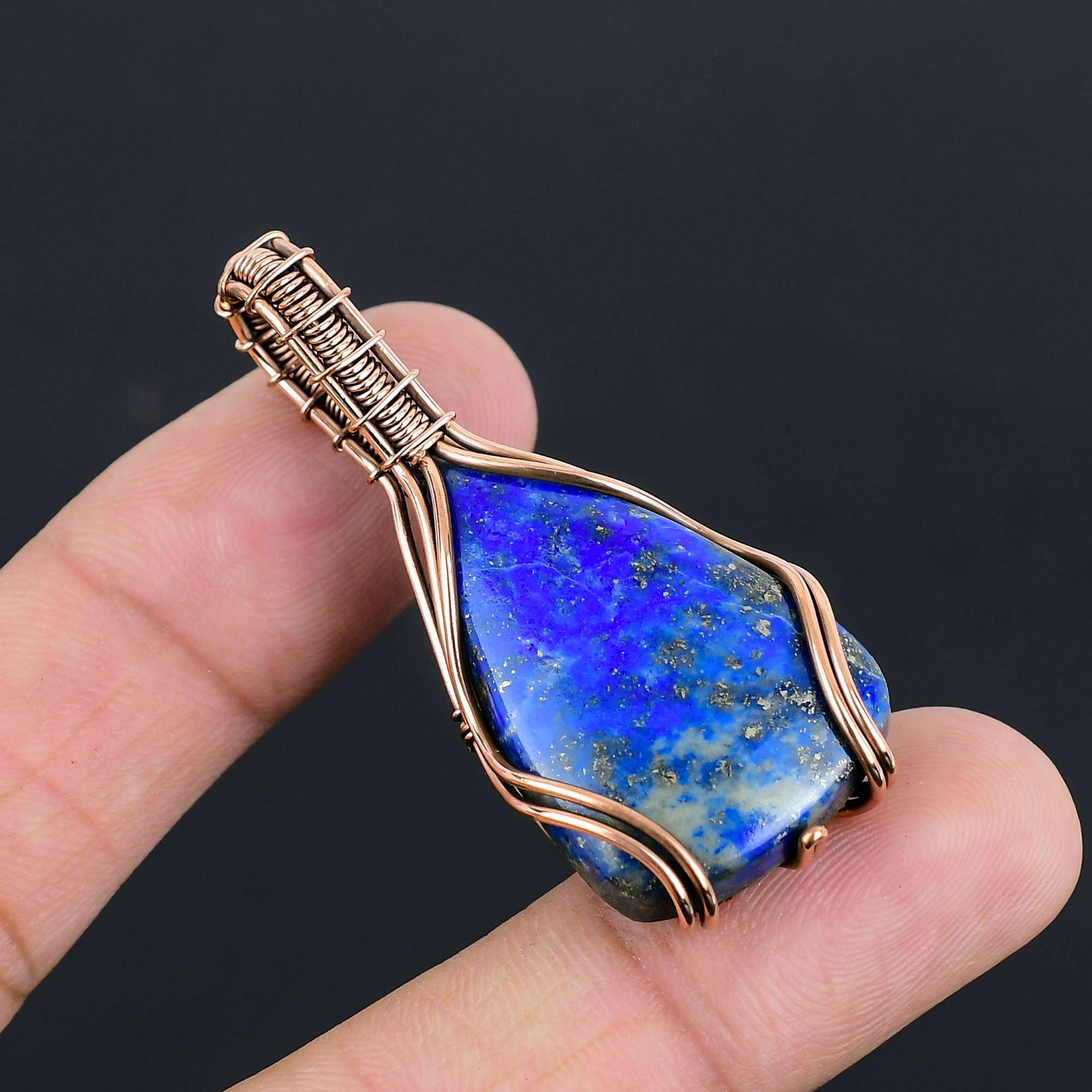 Подвеска из драгоценного камня лазурит | Обернутая окисленная медная проволока | Ожерелье с подвеской | Подвеска из меди ручной работы, ювелирное украшение в подарок для нее/негоLC-315