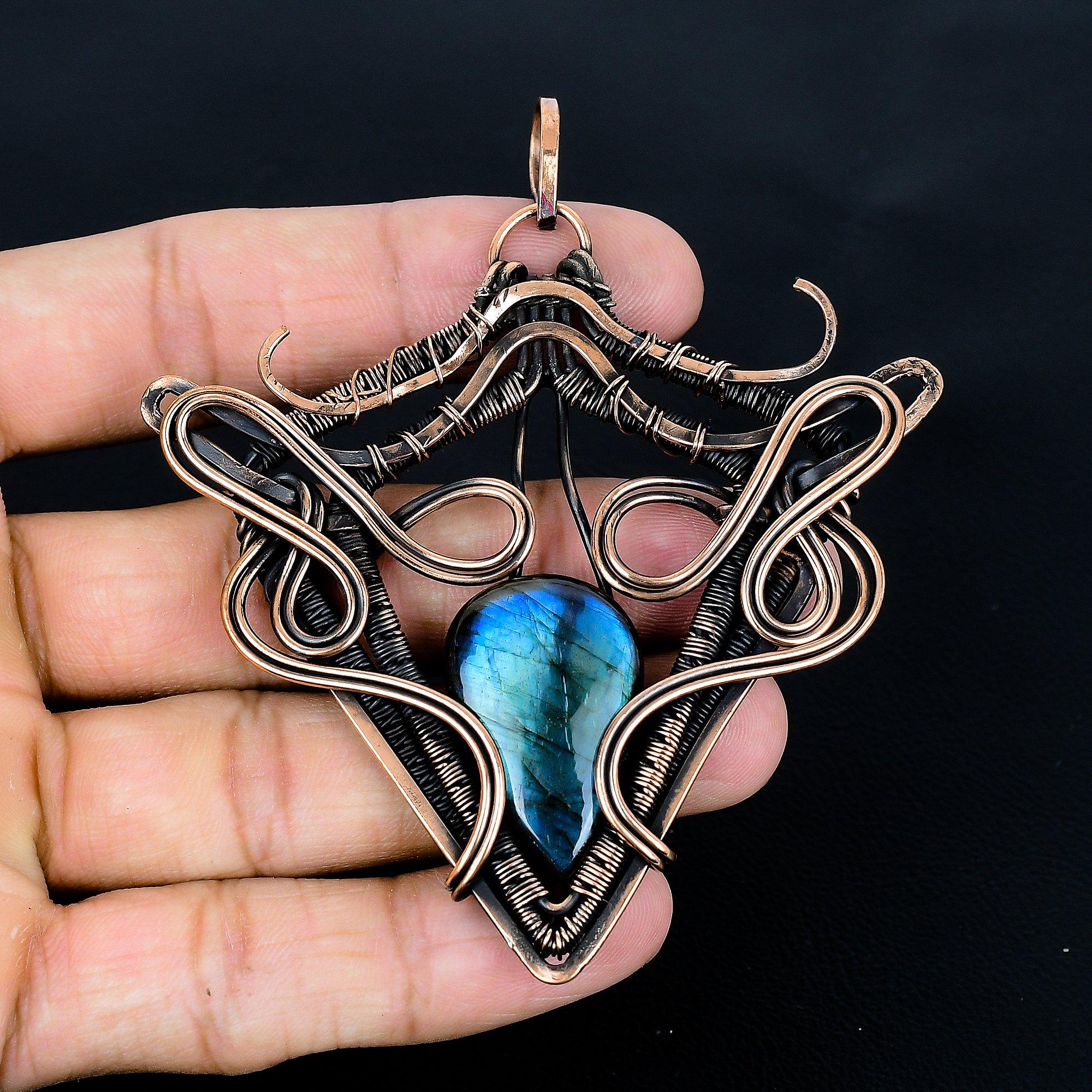 Подвеска из лабрадорита, Подвеска ручной работы, обернутая медной проволокой 999 пробы, Антикварное украшение, Для подарка, Серебряное украшение 2.55 Inches