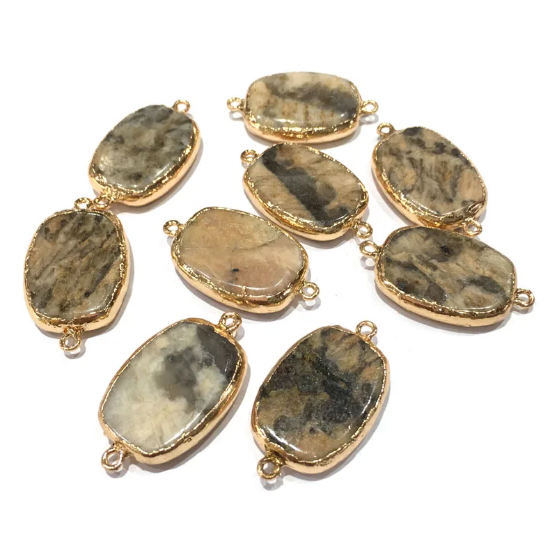 Подвеска из натурального камня, модная эллиптическая форма, Соединитель с двумя отверстиями для изготовления ювелирных изделий, ожерелье «...