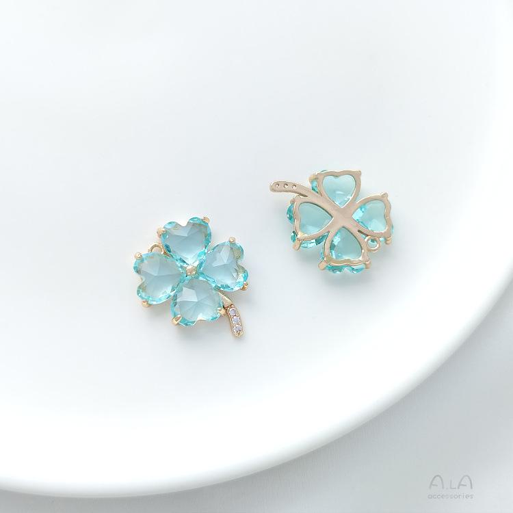 Подвеска-клевер с четырьмя лепестками из золота 14 карат с цирконом и серьги - Ручная работа и сохраняющие цвет DIY ювелирные шармы