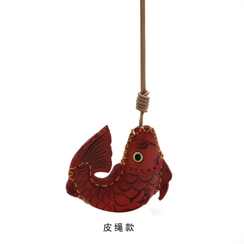 Подвеска на сумку из натуральной кожи с рыбой кои в виде первого слоя, ручная работа, брелок для автомобиля, праздничный национальный стиль, счет на руку