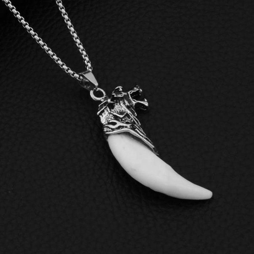 Подвеска с головой дракона и зубом волка: Ожерелье из нержавеющей стали в стиле панк-ретро в этническом стиле для мужчин