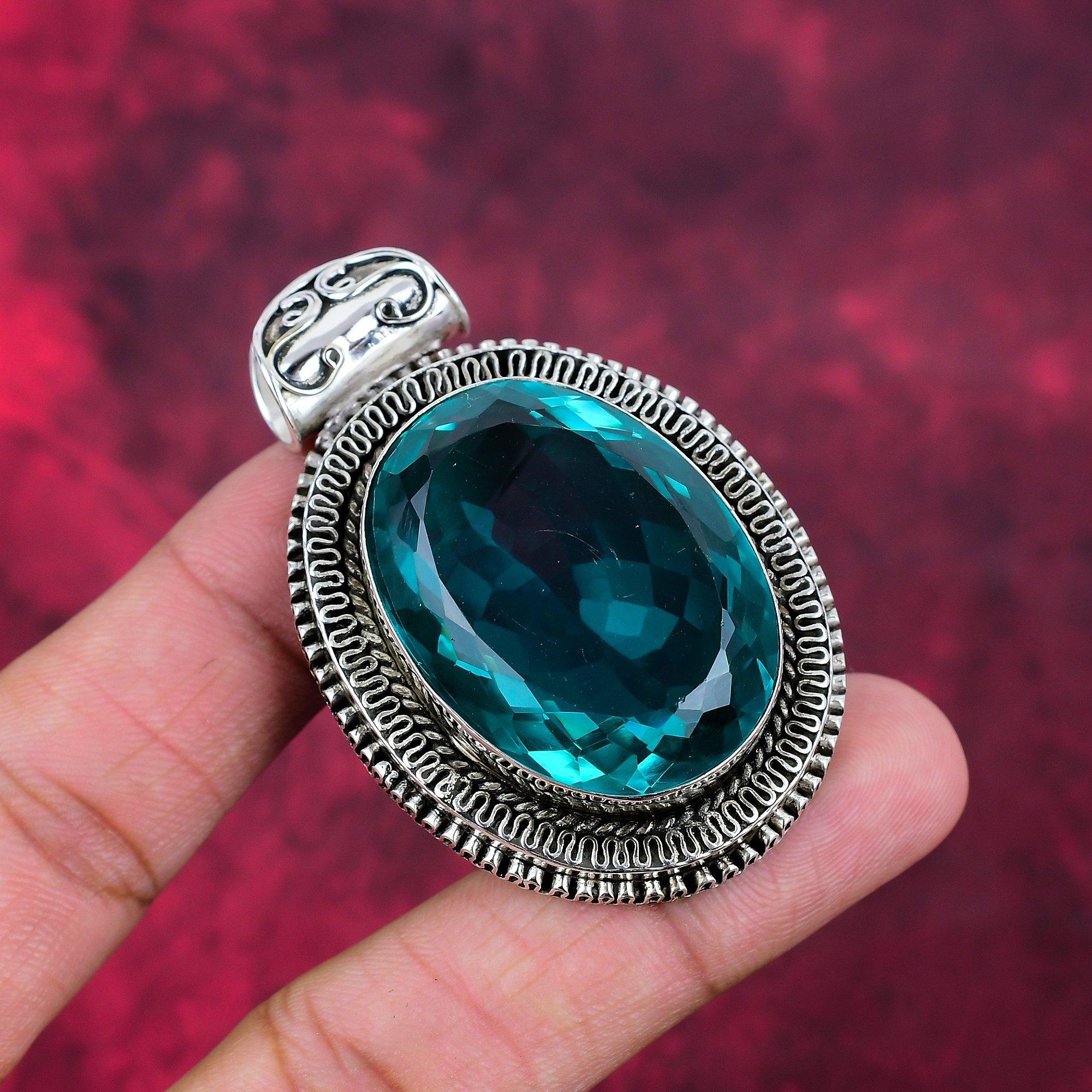 Подвеска с драгоценным камнем индиголит, подвеска из цельного серебра 925 пробы, антикварное украшение ручной работы, подарок для матери
