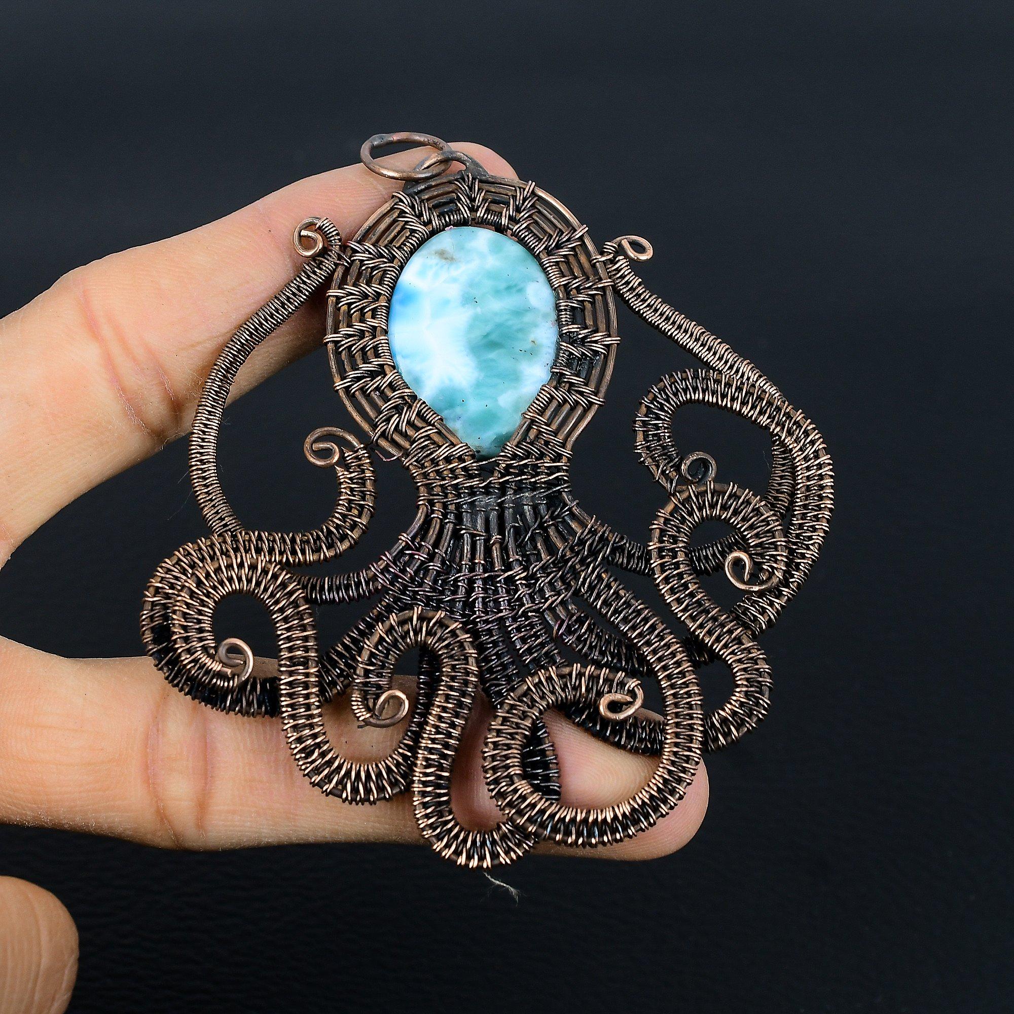 Подвеска с ларимаром, Ювелирное изделие из драгоценного камня, Подвеска, обернутая медной проволокой 999 пробы, Украшения ручной работы, Подвеска с камнем рождения, Подарок для него 2.55 Inches