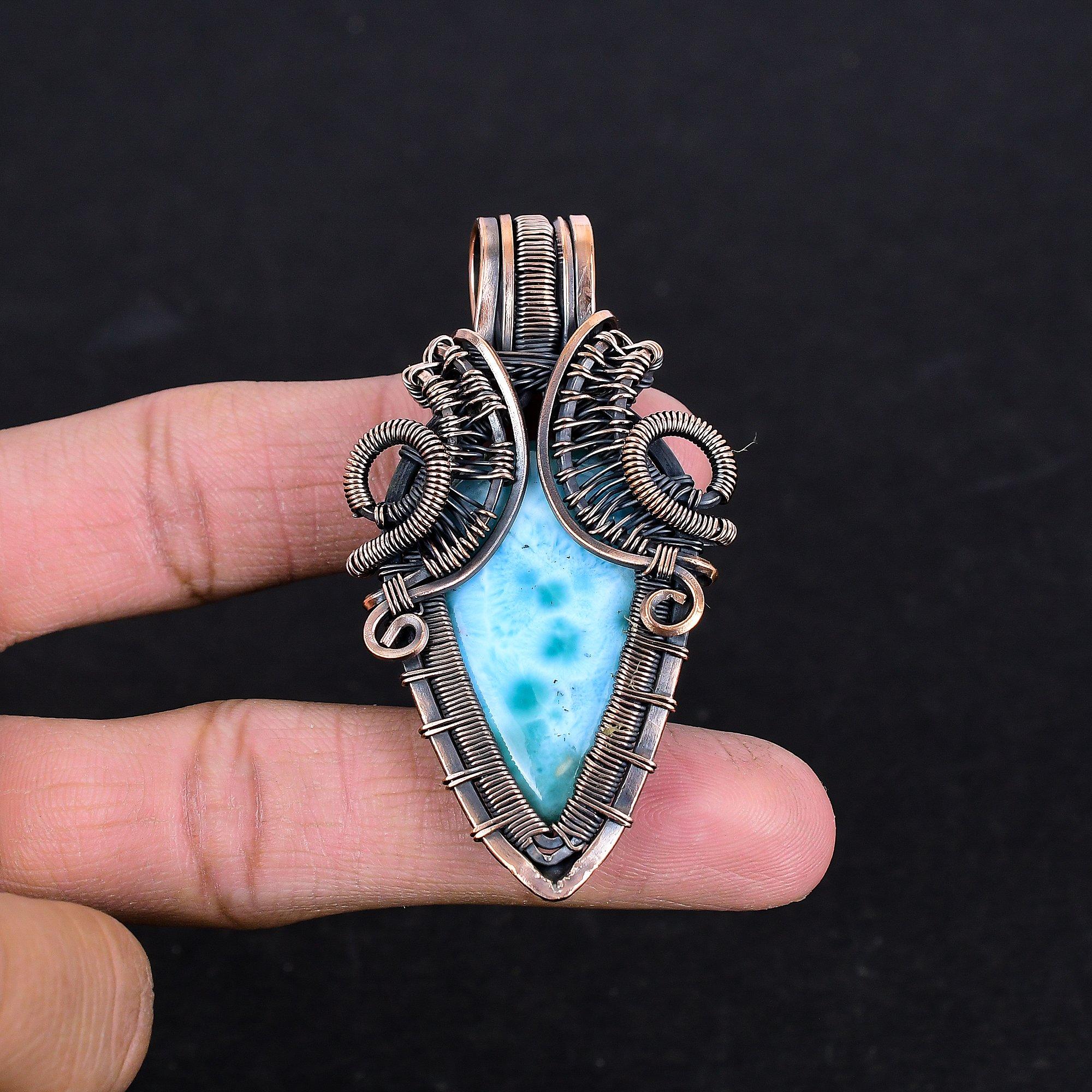 Подвеска с ларимаром, Ювелирное изделие из драгоценного камня, Подвеска, обернутая медной проволокой 999 пробы, Украшения ручной работы, Подвеска с камнем рождения, Подарок для него 3.77 Inches синий