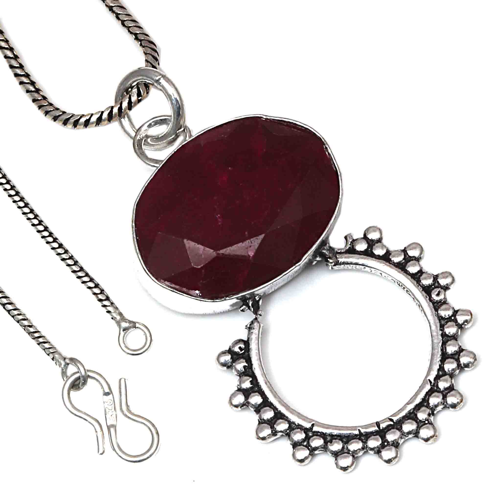 Подвеска с рубином и сапфиром, драгоценный камень, ручная работа, серебряное украшение ко Дню святого Валентина, 2,5 дюйма