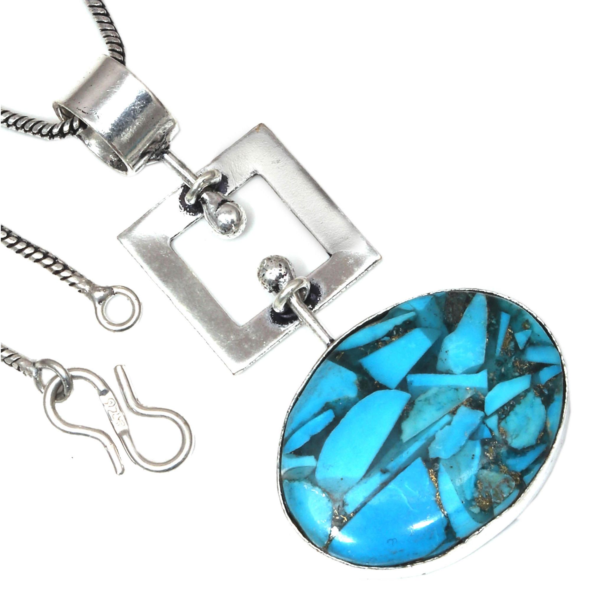 Подвеска с синим медным бирюзовым камнем, подарок на день святого Валентина, серебряное украшение 2 дюйма