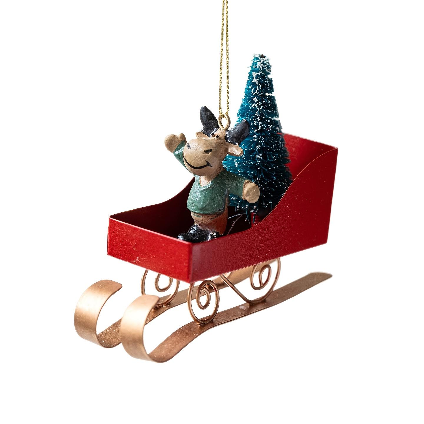 Подвесное украшение «Сани Санта-Клауса», Винтажное рождественское украшение с Сантой, Оленем, Снеговиком, Сверхпрочная металлическая/полимерная конструкция Elk