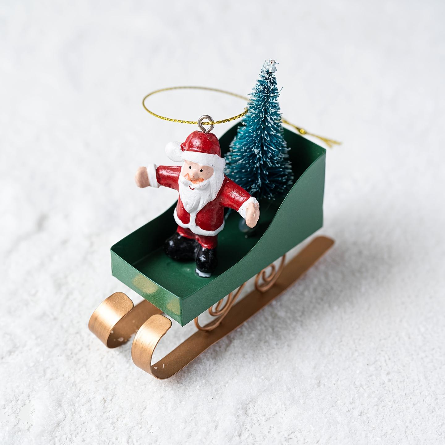Подвесное украшение «Сани Санта-Клауса», Винтажное рождественское украшение с Сантой, Оленем, Снеговиком, Сверхпрочная металлическая/полимерная конструкция Santa Claus