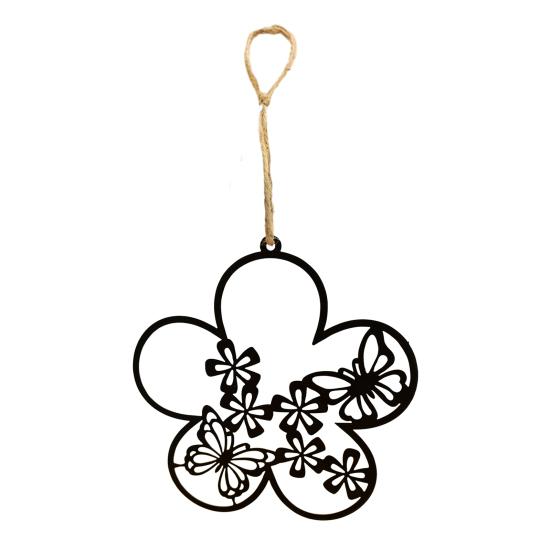 Подвесное украшение в форме цветка Металлическое украшение с ажурным узором Силуэт цветка и птицы Flower