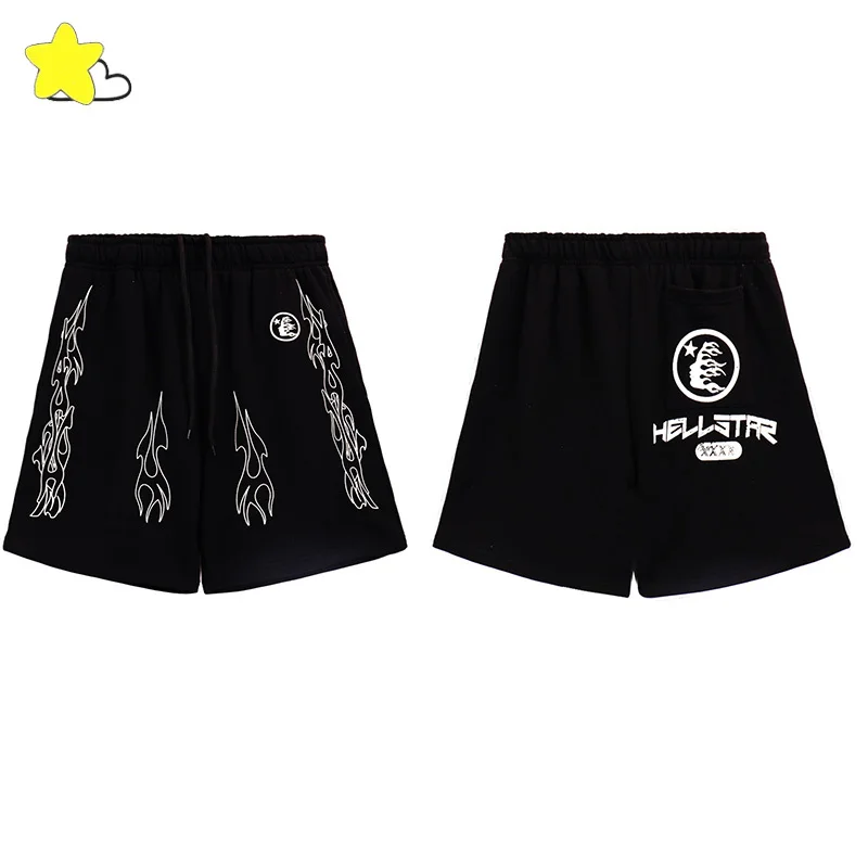 High Quality Cotton Drawstring Black Hellstar Shorts Men Women Streetwear Casual Flame Logo Printing Breeches Loose
