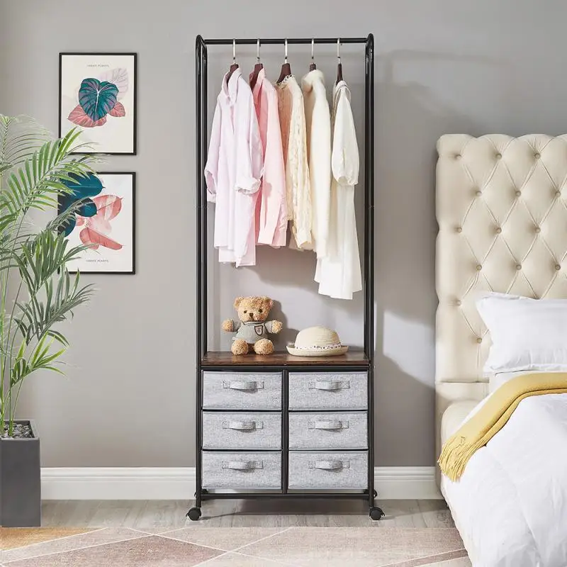 Подвижный простой шкаф, Многофункциональная вешалка для дома с коричневой цветочной пластиной, шесть ячеек, тянущаяся стойка для хранения ...