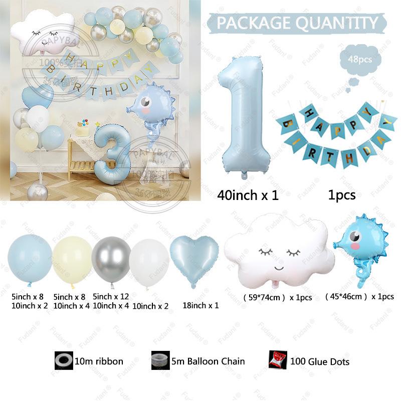 Подводный мир Милый маленький морской конёк Облако Алюминиевая плёнка Воздушный шар Цепочка Набор Синий Флаг на день рождения Детская океанская вечеринка Set 1