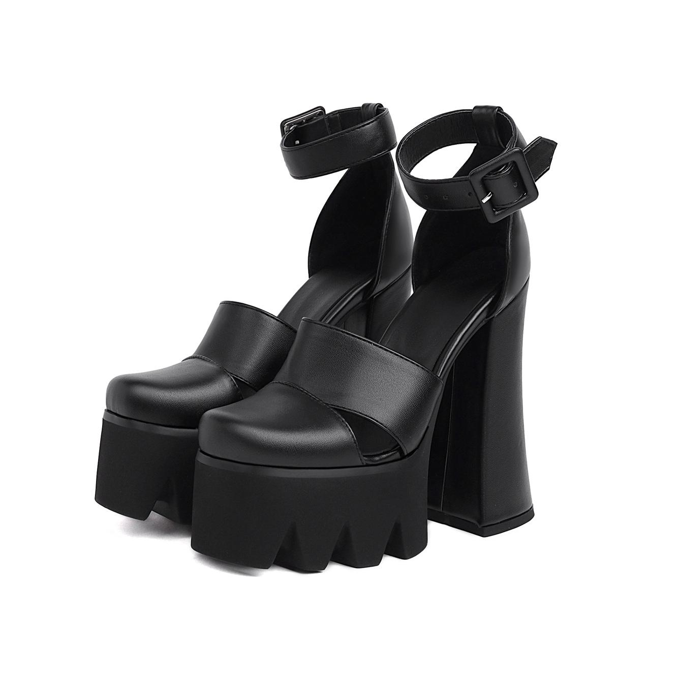 Подиумные босоножки на супервысоком каблуке, панк-стиль, уличный тренд, толстая подошва, супервысокая водонепроницаемая платформа, летняя женская обувь 39 чёрный