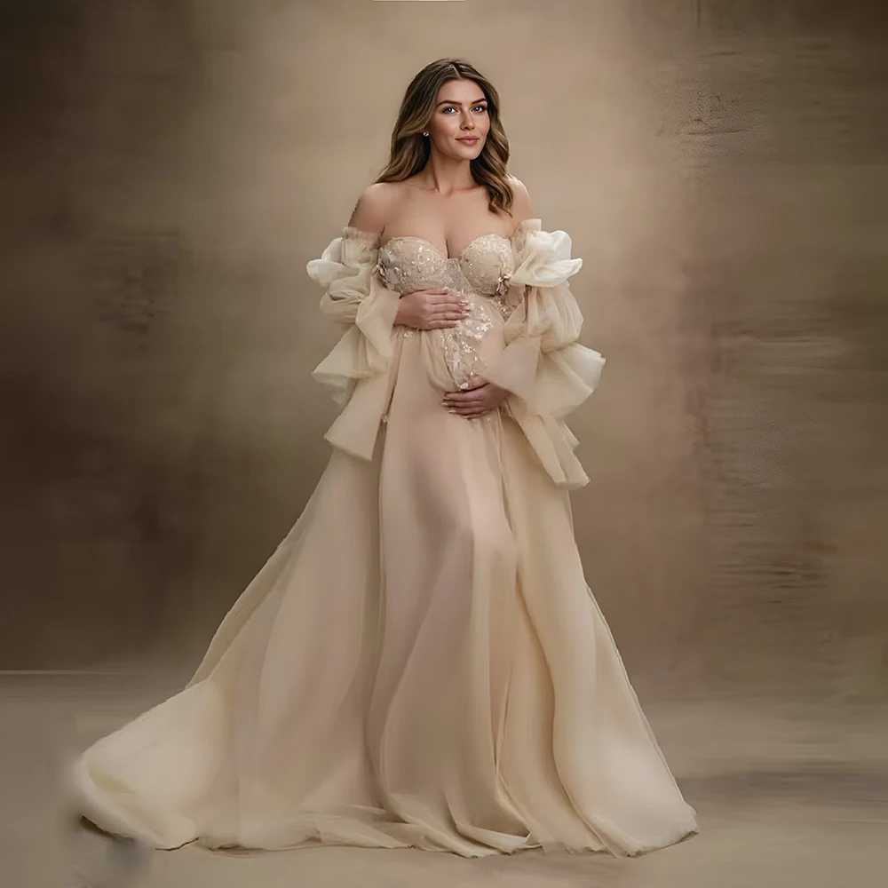 Тюлевое платье с открытыми плечами для беременных, платье для фотосессии с длинными рукавами, платья для стрельбы для беременных женщин, наряд для детского душа