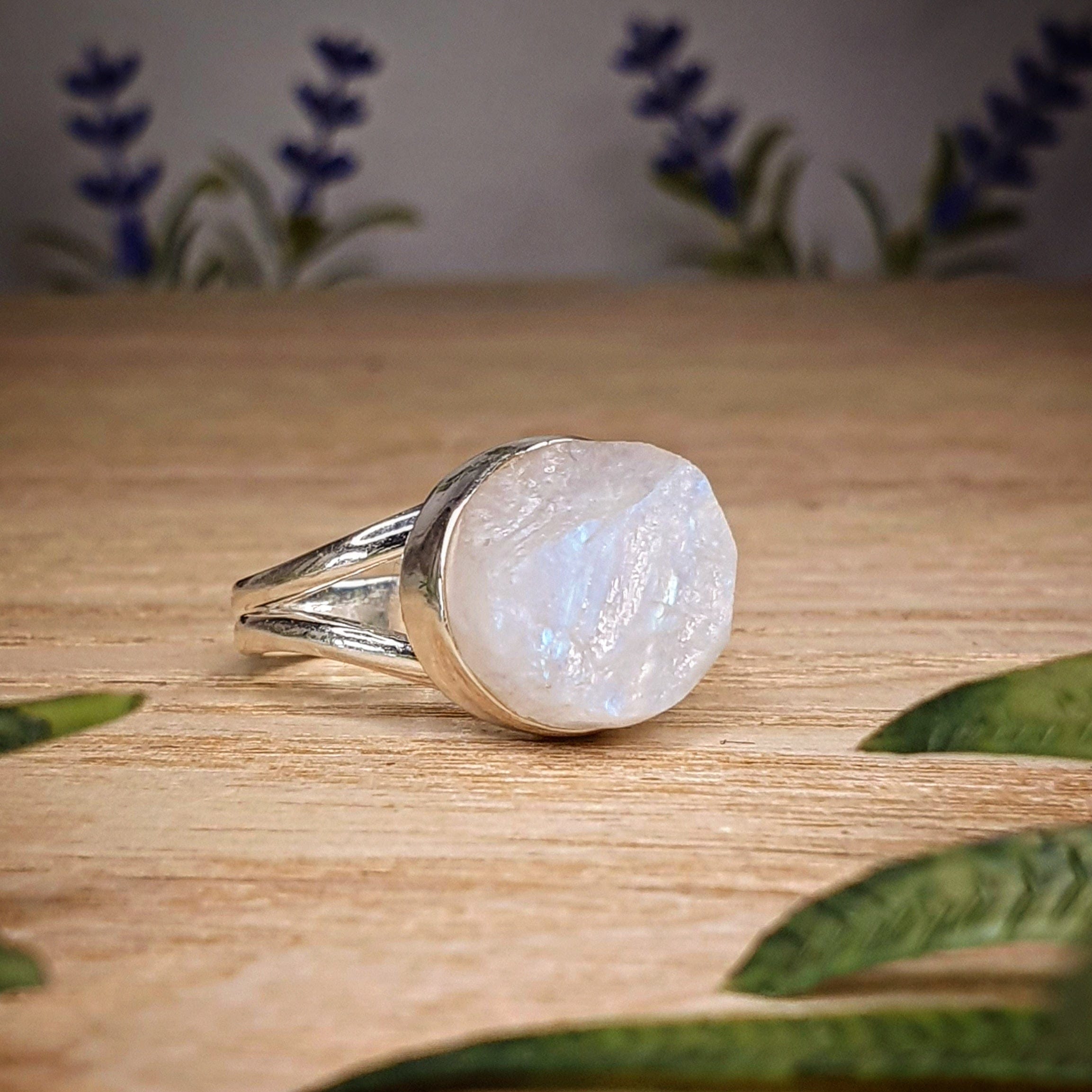 Подлинный чешский лунный камень, необработанный драгоценный камень, чистое серебро 925 пробы, ювелирное изделие ручной работы, эффектное женское кольцо, подарок для нее. белый