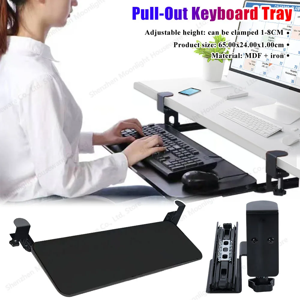Поднос для клавиатуры под столом Выдвижная платформа для клавиатуры и мыши с C-образным зажимом Компактный эргономичный выдвижной компьютерный ящик