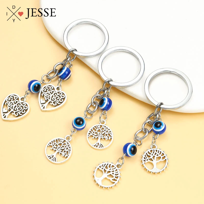 Tree Of Life Evil Eye Beads Pendant Keychains Lucky Eye Silver Color Keyrings for Women Men Bag Car Key Holder Jewelry Wholesale