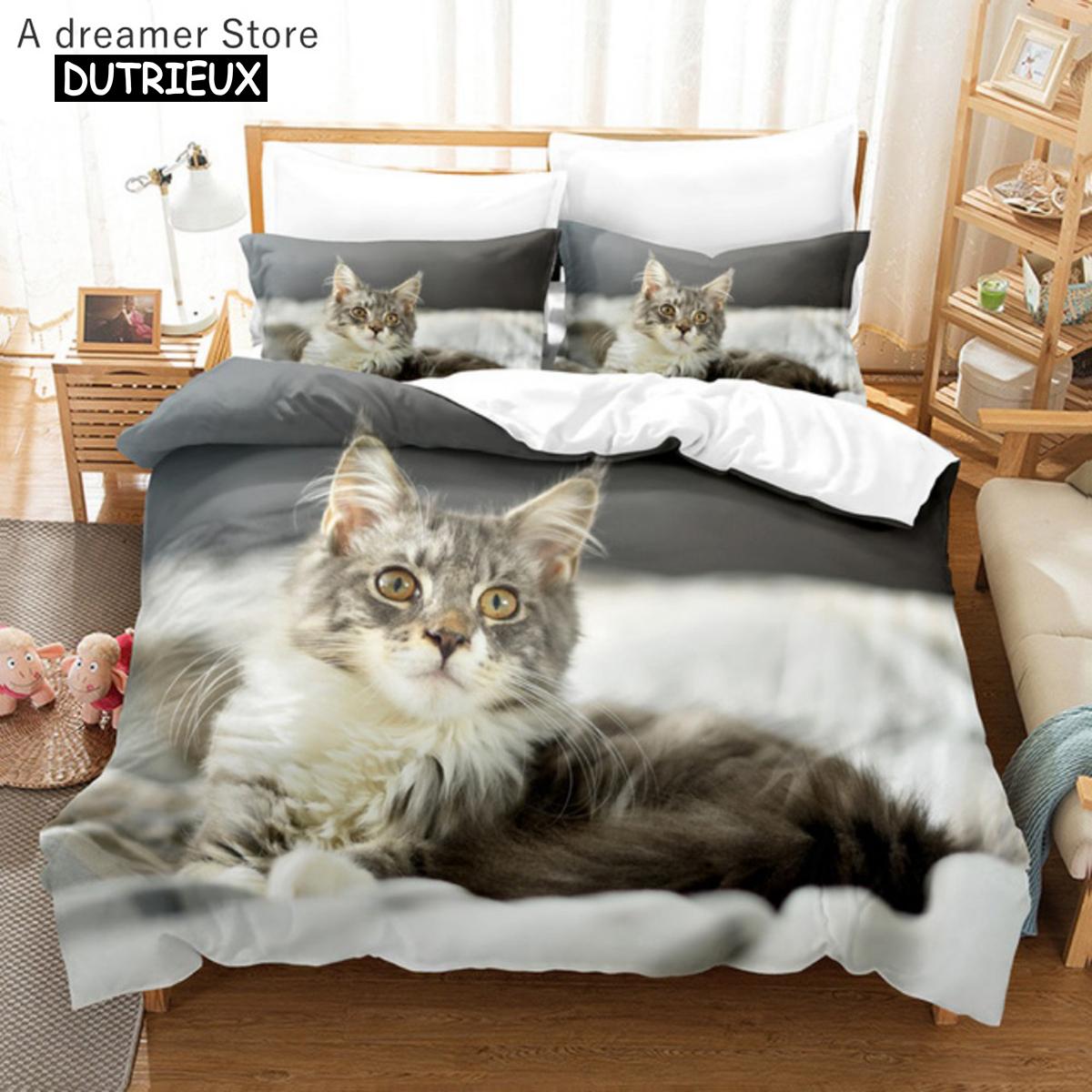 Пододеяльник Забавный милый Pograph Cats Постельное белье Комплект Модный Пододеяльник Наволочка Спальня Черный Кот Покрывала Постельный комплект Для Детей EU single(135x200cm)