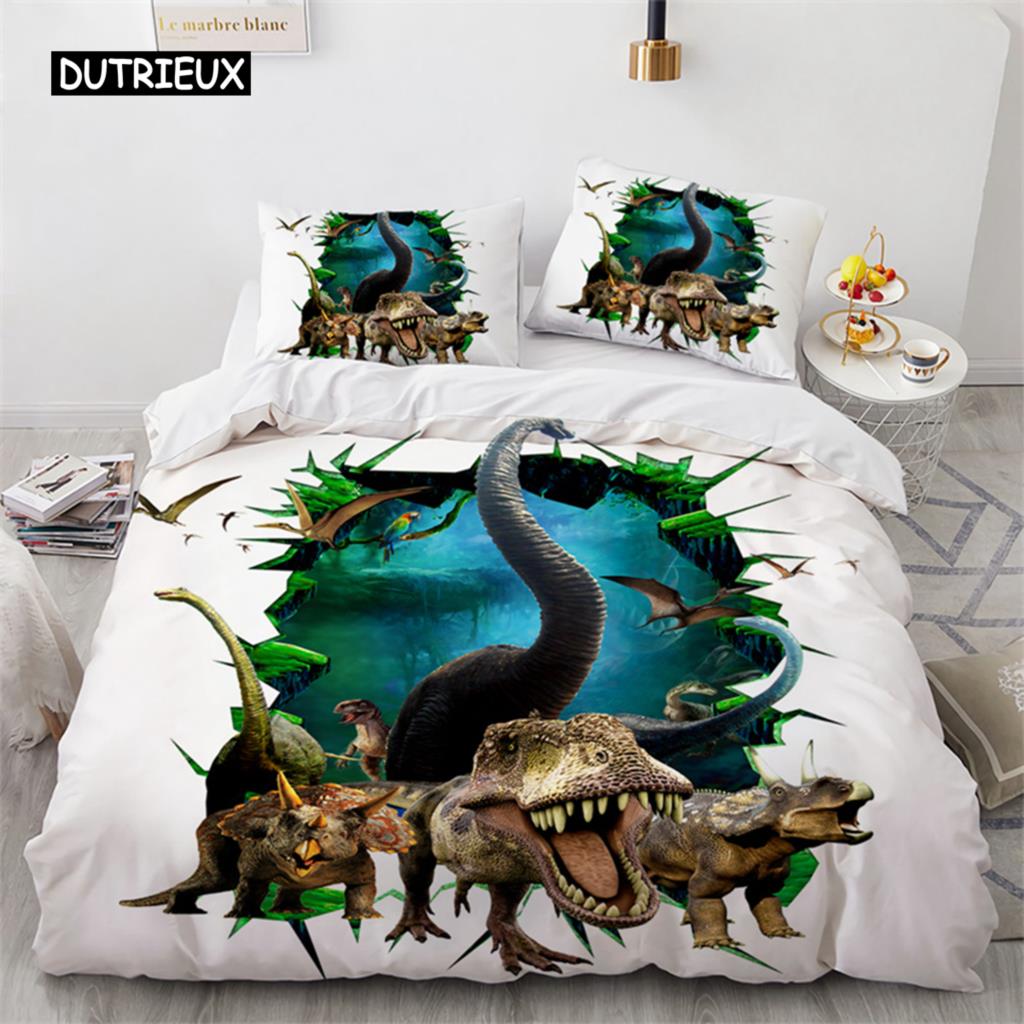 Пододеяльник с изображением динозавра из микрофибры с 3D-принтом «Животное» Покрывало с изображением динозавра «Парк Юрского периода» Комплект постельного белья для детей и подростков Подарок Декор комнаты EU single(135x200cm)