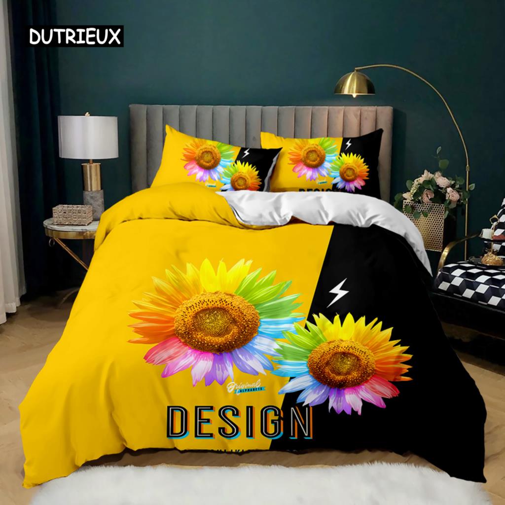 Пододеяльник с изображением подсолнуха Желтый цветок Американский безликий человек Водитель автомобиля Комплект постельного белья из полиэстера Покрывало в деревенском стиле EU single(135x200cm)