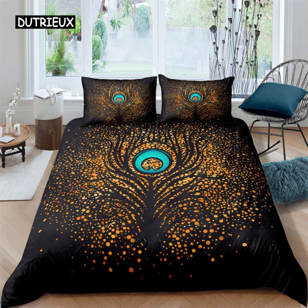 Пододеяльник с павлиньими перьями, комплект постельного белья с перьями, микрофибра, цветочное одеяло, двуспальная кровать для мальчиков-подростков и девочек, декор для спальни EU single(135x200cm)