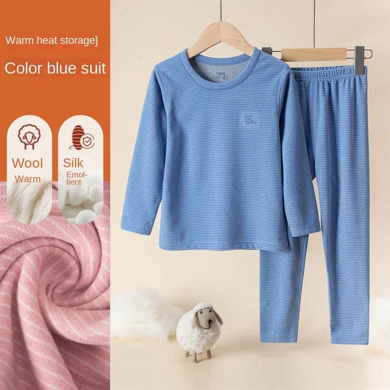Подростковая детская пижама теплая одежда шерстяное шелковое термобелье комплект из плотной ткани с начесом для младенцев мальчиков и девочек пижамы 2 шт. 170cm