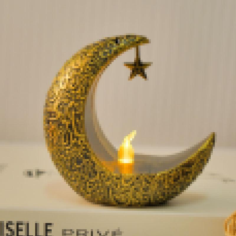 Подсвечник Звезда и Луна Электронная Свеча Лампа Украшение Атмосфера Ветровая Лампа Композиция Маленькие Украшения Warm Light золотой