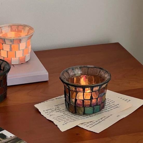 Подсвечник для чайных свечей Yousheng, цветной прозрачный стеклянный подсвечник, мозаичный подсвечник для чайных свечей, центральный элемент для стола, декор для дома и спальни чёрный