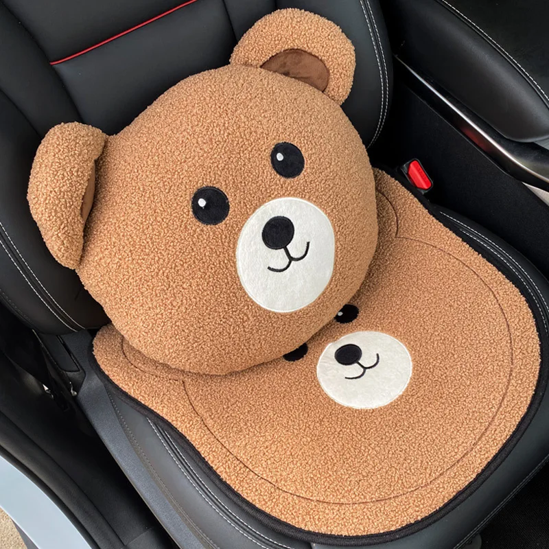 Подушка для автомобильного сиденья из полиэстера, однотонная мультяшная серия «маленький медведь и свинья», наплечная талия на подголовни...