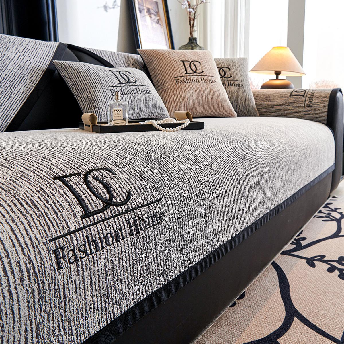 Подушка для дивана Универсальная на четыре сезона Новая легкая роскошь Нескользящая подушка для сиденья Шенилл Однотонный Кожаный чехол для дивана Ткань Полотенце 70*70cm