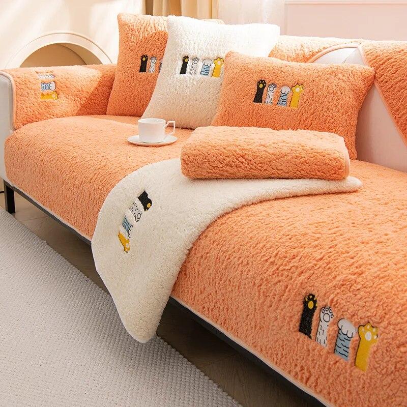 Подушка для дивана из овечьей шерсти, зимняя утолщенная теплая плюшевая подушка, ткань, нескользящая спинка дивана для гостиной, подлокотник, декоративная пыль 70X70CM 1PCS