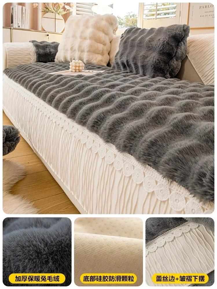 Подушка для дивана кофейного цвета, зимняя, утолщенная, плюшевая, с кружевной кромкой, однотонная, теплая и нескользящая, чехол для дивана, подлокотник, полотенце 70x70cm