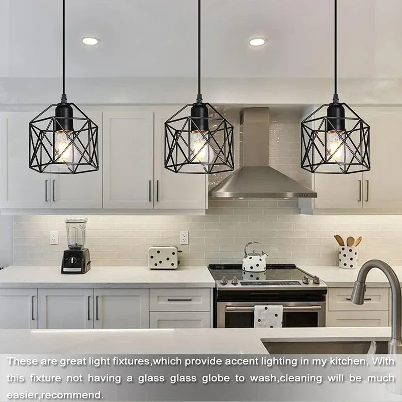 Подвесной светильник в стиле индастриал, регулируемая светодиодная лампа для потолка, металлическая клетка, подвесное освещение для островка, обеденной комнаты