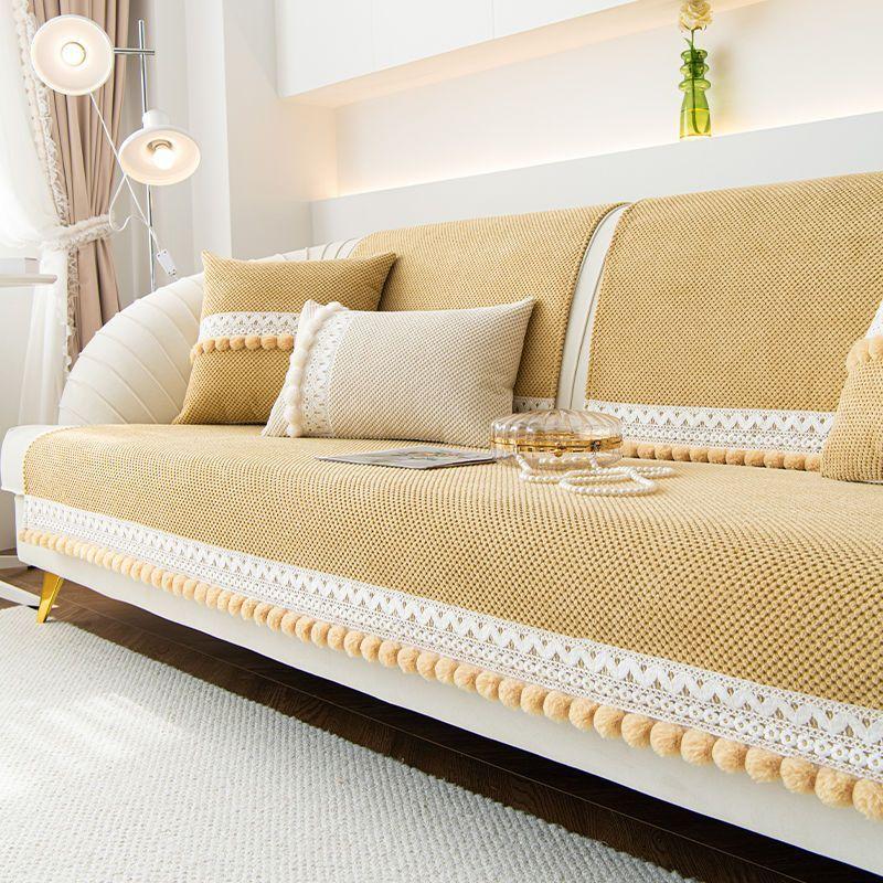 Подушка для дивана, универсальная нескользящая однотонная осенне-зимняя подушка для дивана на четыре сезона, тканевая подушка с кружевным чехлом 70*70cm