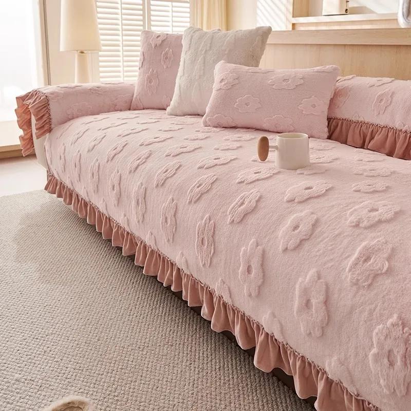 Подушка для дивана Cream Wind Rabbit Plush, осенне-зимняя утолщенная кожаная подушка для дивана, новая нескользящая цельная ткань для дивана 30x50cm pillowcase