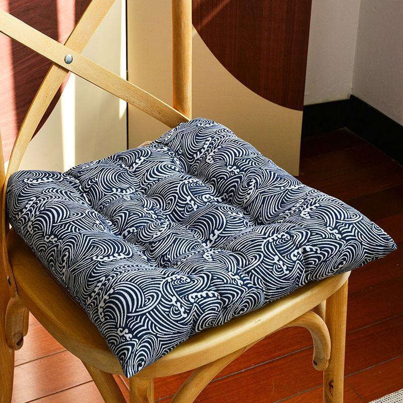 Подушка для сиденья с ремешком, хлопковая и льняная ткань, подушка для эркерного окна, татами, подушка для сиденья в этническом стиле, квадратная Wave Auspicious Cloud 40X40cm