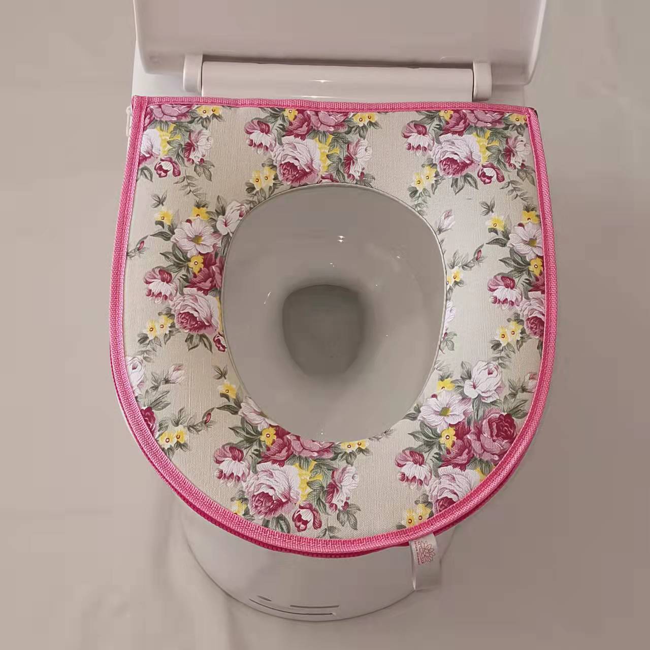 Подушка для сиденья унитаза с цветочной хлопковой тканью, универсальная молния для всех сезонов, бытовая накладка на сиденье унитаза, летняя крышка для унитаза Zipper розы красного