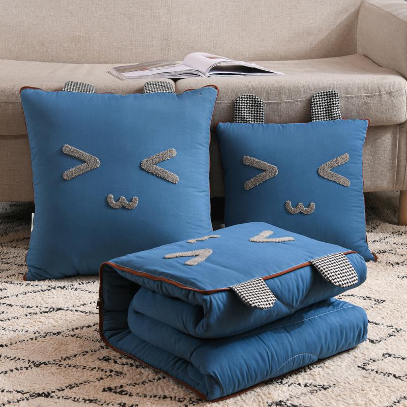 Подушка-плед для кошек Four Seasons, приятная к коже - 3D вышивка, цвет «каменный серый», стиранный хлопок Cushion 40x40 cm, Blanket 105x145 cm