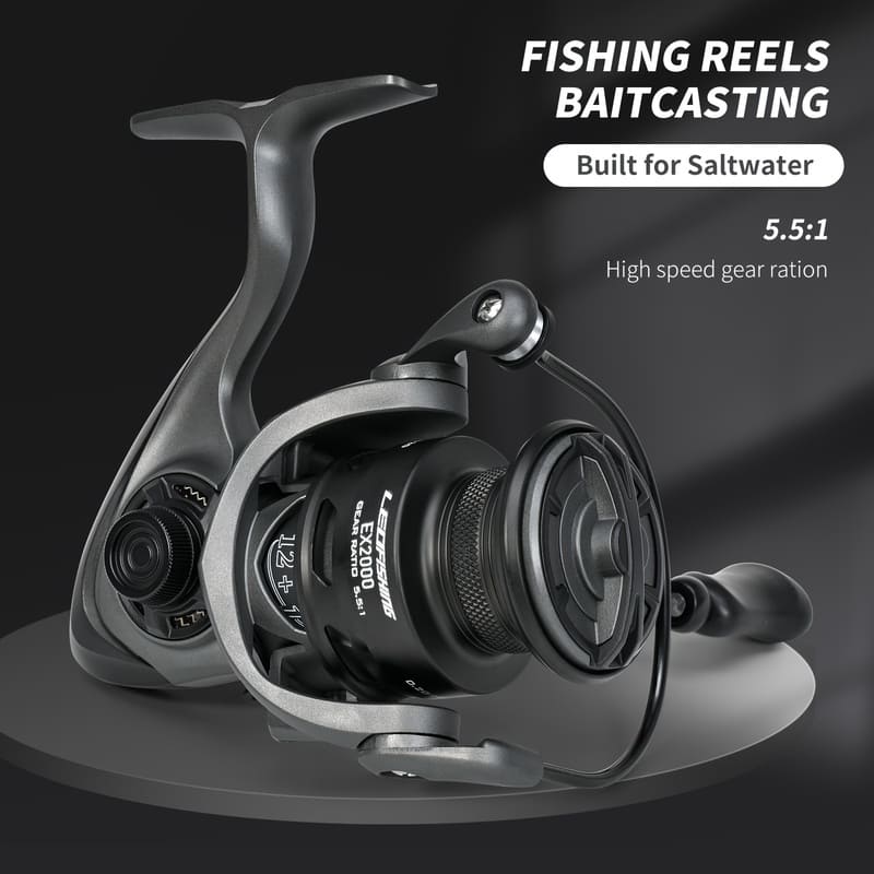 Подходит для всех вод Двуручная алюминиевая спиннинговая рыболовная катушка G Высокоскоростная 5.5:1 Передаточное число Суперплавная и Мощная Разгрузка Складной Металлический EX1000 серый