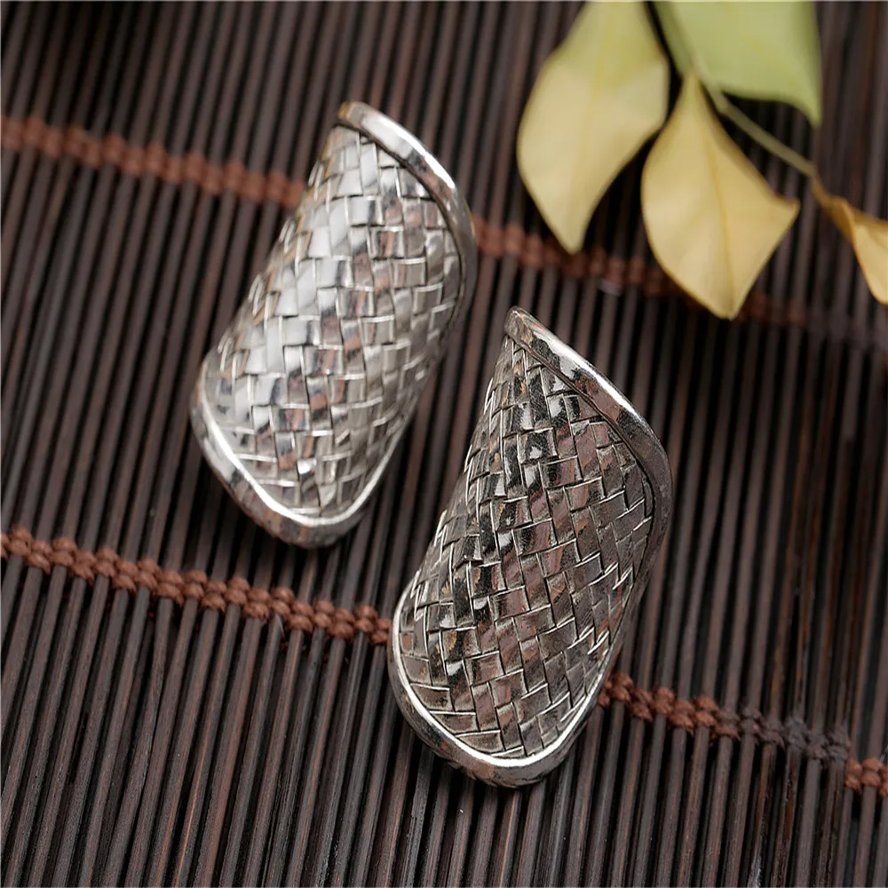 Thailand Hand-woven S925 Sterling Silver Wide Face Ring, Ethnic Style Thai Silver Ladies Retro Adjustable Open Ring Wholesale