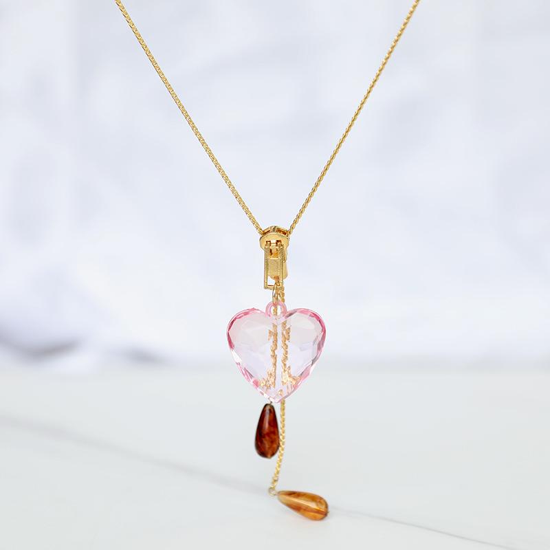 Позолоченная прозрачная подвеска в форме сердца, регулируемое ожерелье - Элегантная и универсальная женская ключичная цепочка золотой