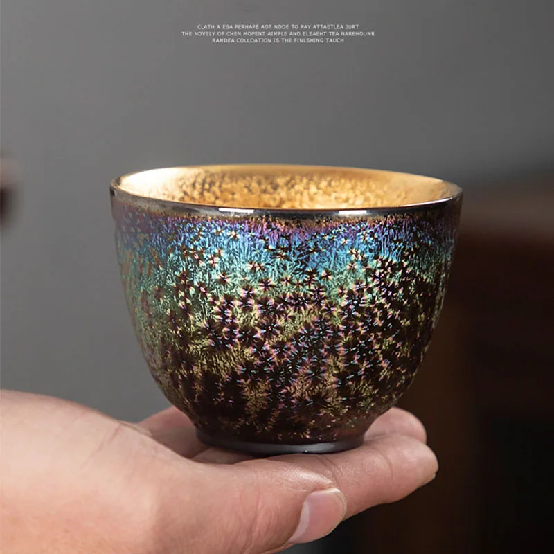 Позолоченная цветная глазурованная чайная чашка с павлином, 24 к, маленькие деловые подарки, керамическая чайная чашка, керамические чаши ру...
