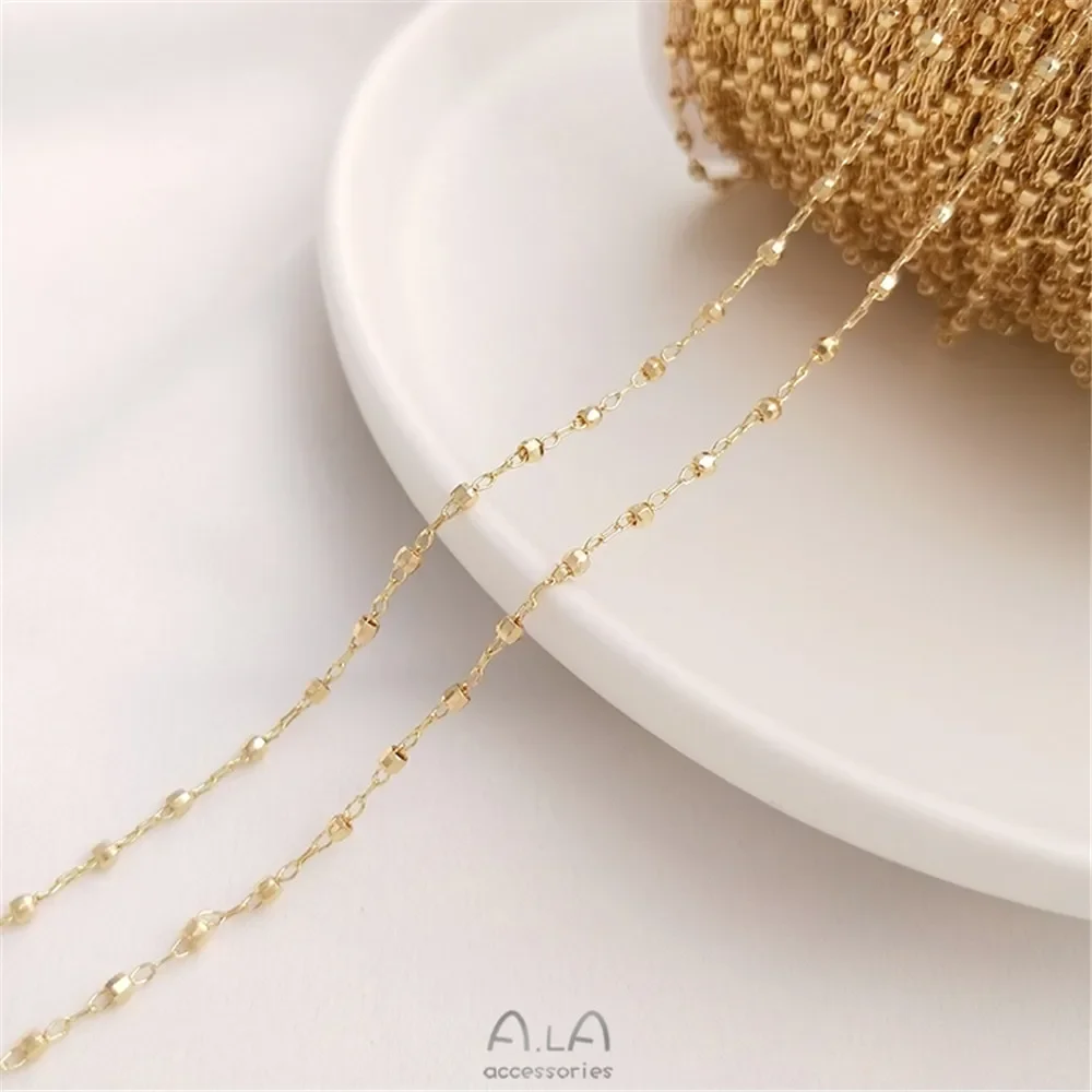 Позолоченная цепочка 14 к ручной работы, тонкая цепь с резной поверхностью из бисера, ожерелье «сделай сам», Аксессуары для браслета, свободная цепочка