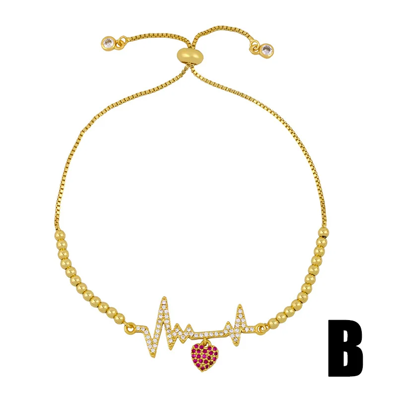 Позолоченные бусины, цепочка для мальчиков и девочек, Парные браслеты для женщин, циркониевое покрытие, молния, ЭКГ, узор, розовое сердце, бр...