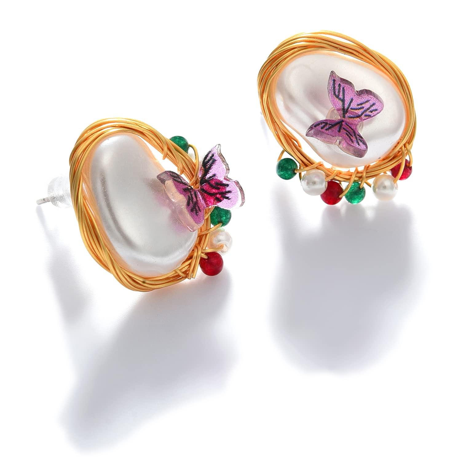 Позолоченные серьги в форме бабочки для женщин, Золотая проволока и бусины, Позолота, милые серьги для девочек,