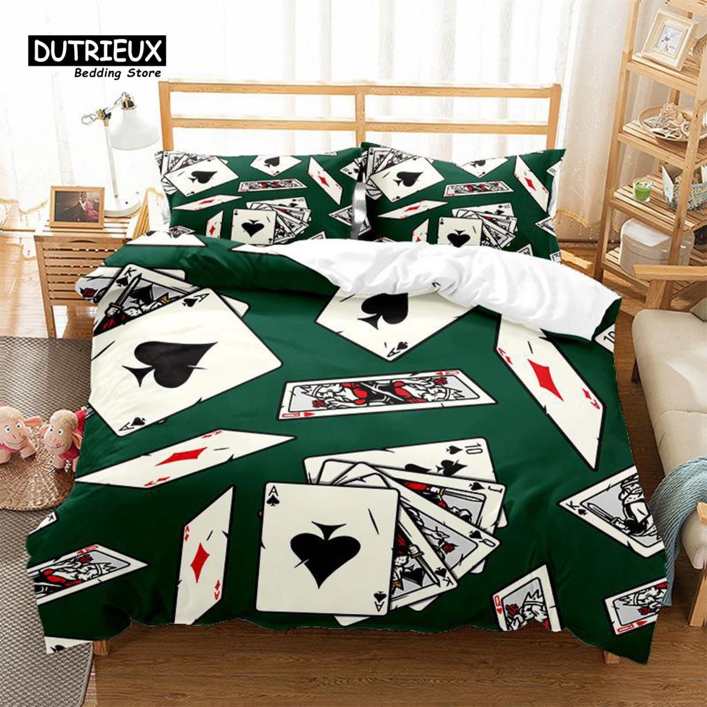 Покер Пододеяльник Фишки для игры в кости Постельное белье Игра в азартные игры Покер Карточная игра Досуг Тема Пододеяльник С Наволочками Декор комнаты US Queen(228x228cm)