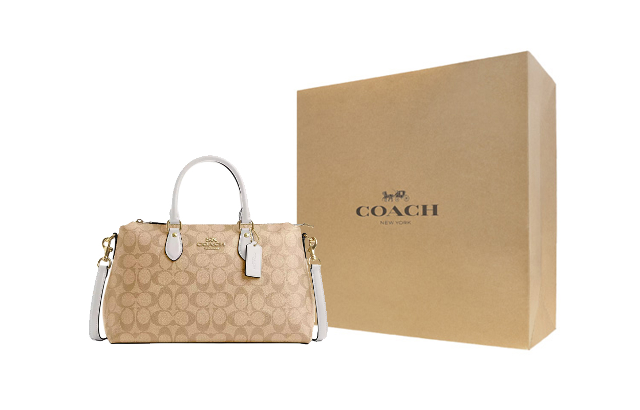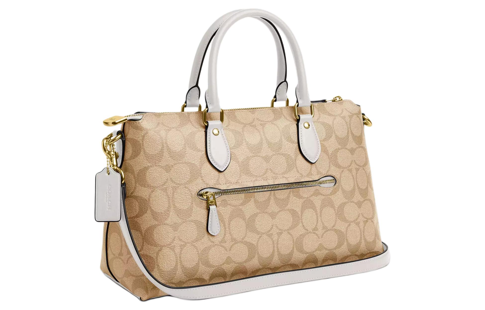 Покрытая тканью с гладкой кожей наплечная сумка через плечо ручная кладь большой размер женская золотистый и светло-хаки COACH