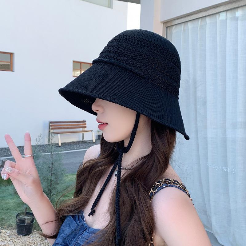 Полая панама женская летняя солнцезащитная вязаная шляпа шляпа-ведро с широкими полями шляпа от солнца с разрезом сзади тренд M(56-58cm) чёрный