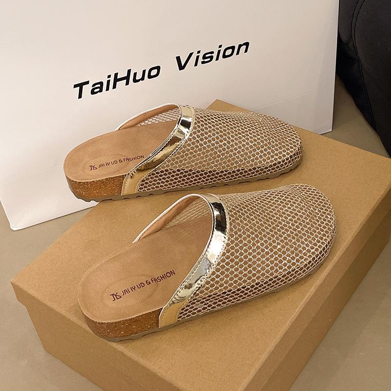Полая сетчатая сумка-голова для рыбалки, женские полушлепанцы 2025, новая модная универсальная модель с юбкой, пляжные прохладные шлепанцы на одной педали 40 золотой